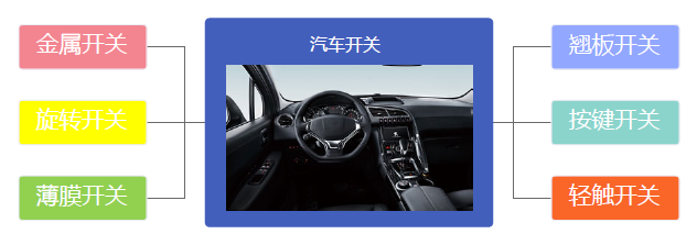 汽車(chē)的電子系統(tǒng)部分,它的許多功能部件,如方向盤(pán)、內(nèi)置顯示屏、控制按鈕等。在汽車(chē)的中控部分有大量的開(kāi)關(guān)。主要有翹板船型開(kāi)關(guān),按鍵開(kāi)關(guān),輕觸開(kāi)關(guān)等,這些開(kāi)關(guān)在汽車(chē)工作中起著決定性的作用。