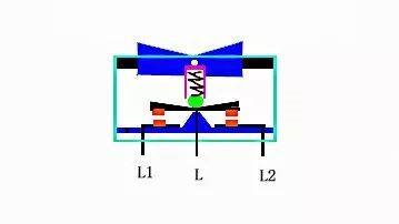 三腳的船型開關結構如圖所示,中間的腳為彈性公共點,兩側的一個是NC(常閉)點,一個是NO(常開)點。