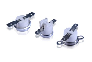 帶外殼的雙金屬片溫控器;單刀單擲,工作于阻性負載下。廣泛應(yīng)用于咖啡壺、飲水機、多士爐、微波爐、電暖器、便攜式冰箱等多種小型家電中作為溫度控制或溫度保護之用,是加熱類小家電中的重要器件。